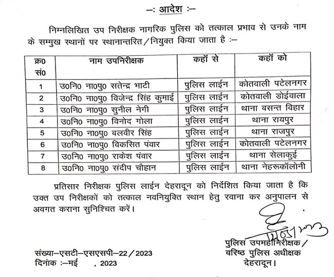 एसएसपी ने आठ दारोगाओं का किया तबादला